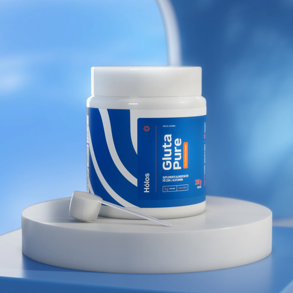A L-glutamina é um aminoácido abundante no corpo humano e essencial para a energia das células imunológicas e intestinais. A suplementação ajuda a manter a saúde intestinal e fortalece o sistema imunológico.